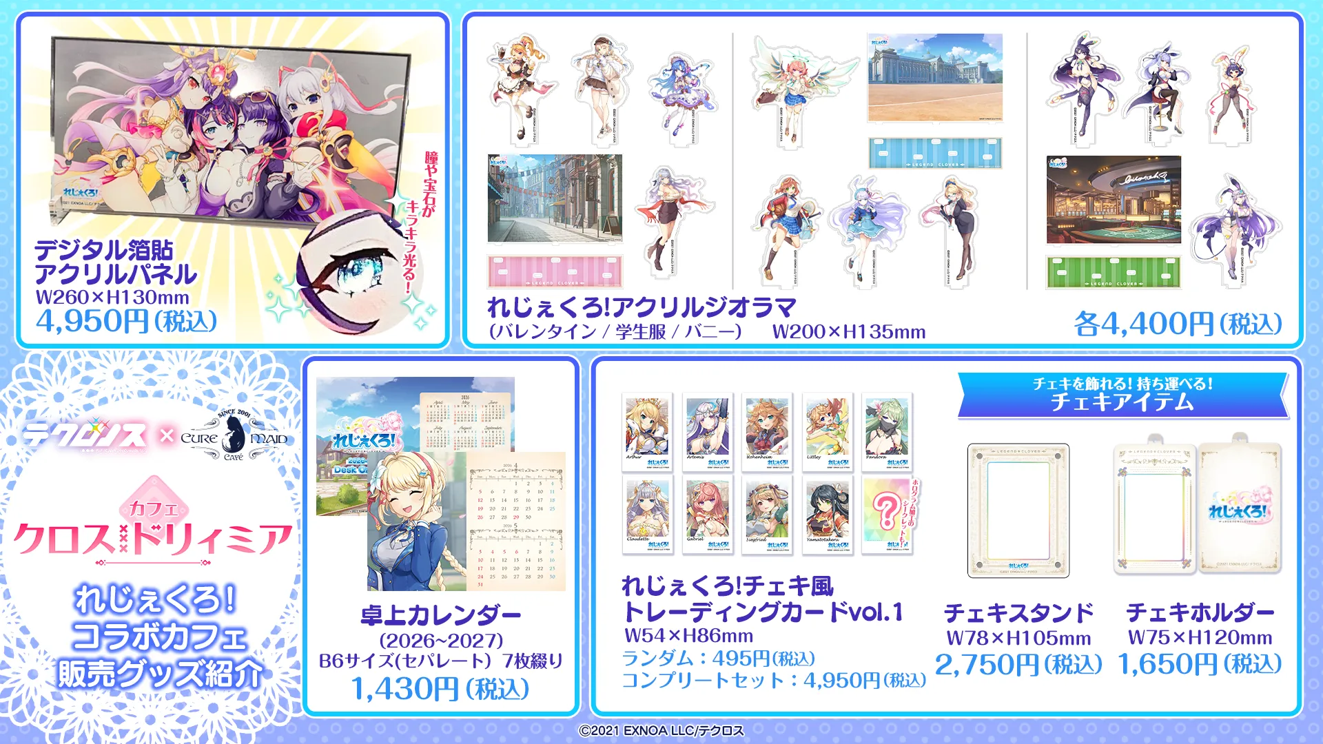 コラボカフェ期間中、同フロアジーストア・アキバにて「テクロノス」「神姫PROJECT」「あやかしランブル!」「れじぇくろ!」関連商品を販売いたします!